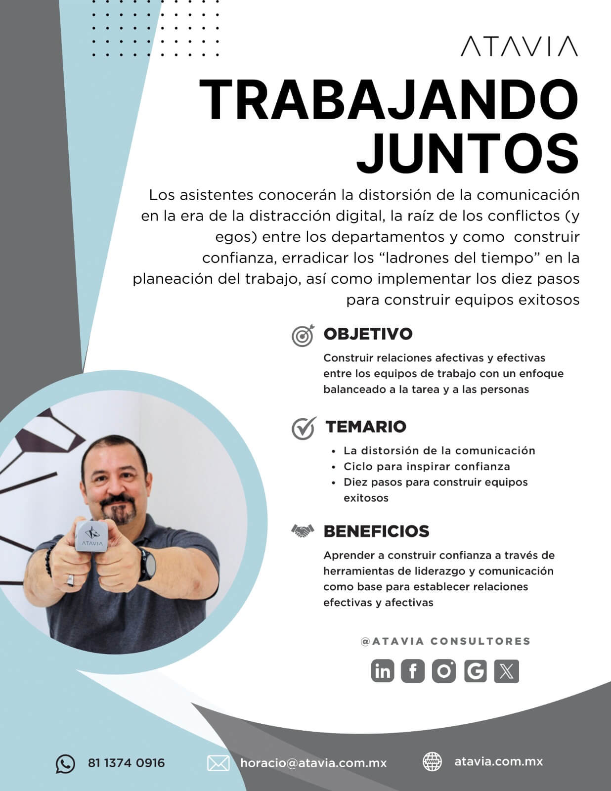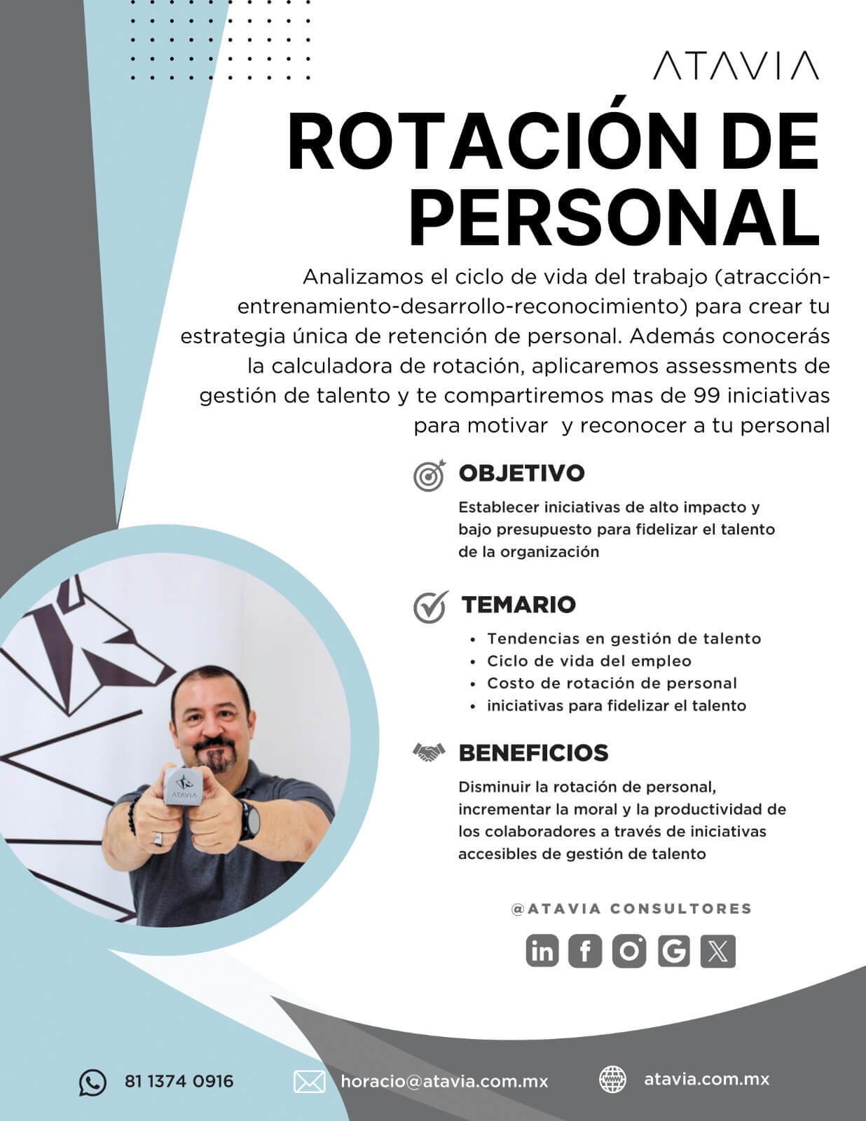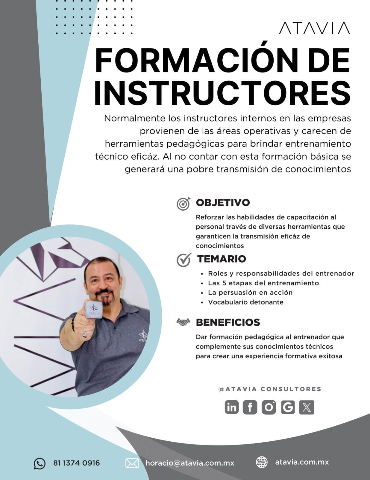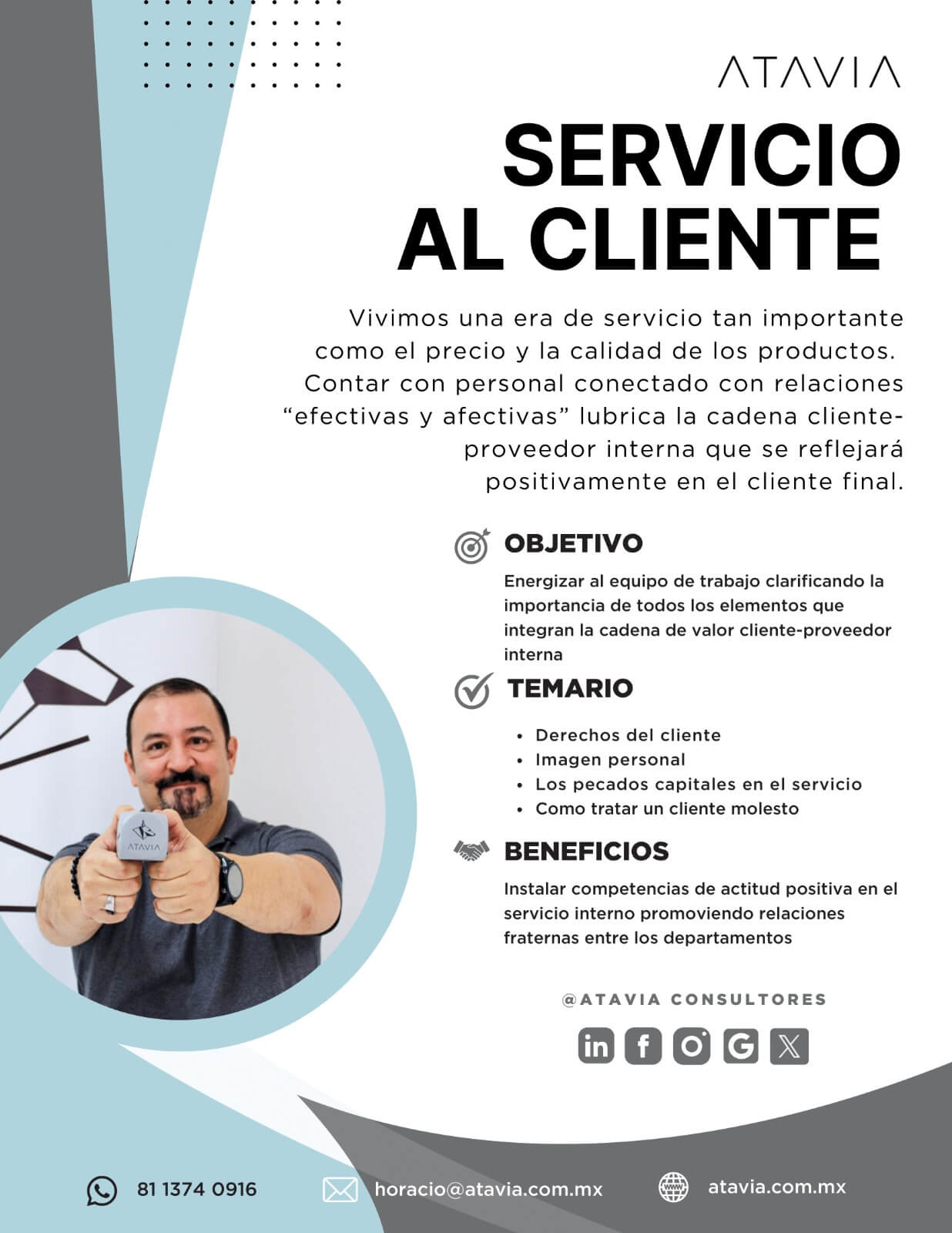 ATAVIA fue parte de uno de nuestros mayores proyectos de este año para el entrenamiento de nuestros lideres. Durante 5 meses aproximadamente contamos con el apoyo de Horacio para impartir una serie de entrenamientos que ayudaran a mejorar nuestros Kpis. Gracias Horacio por tan nutrida experiencia.