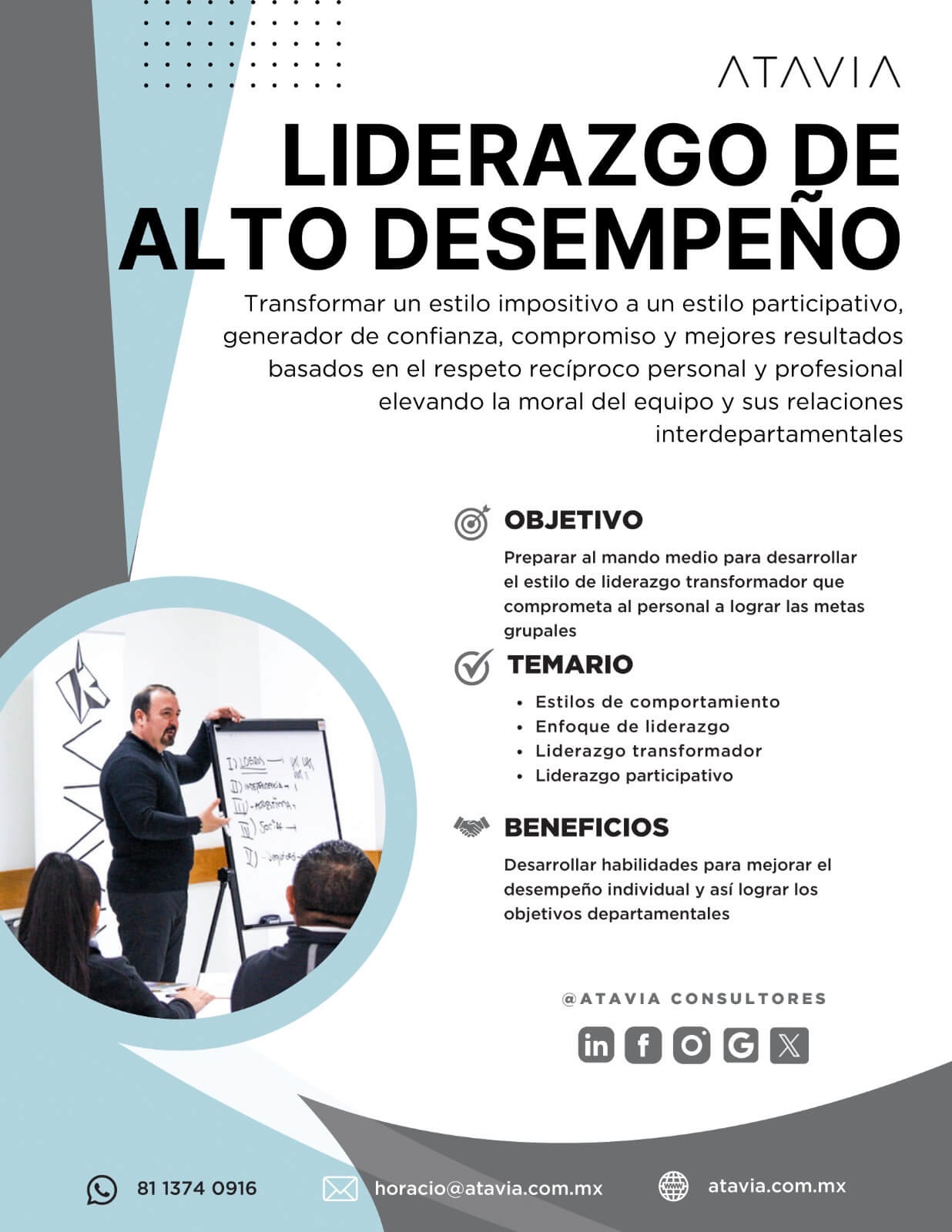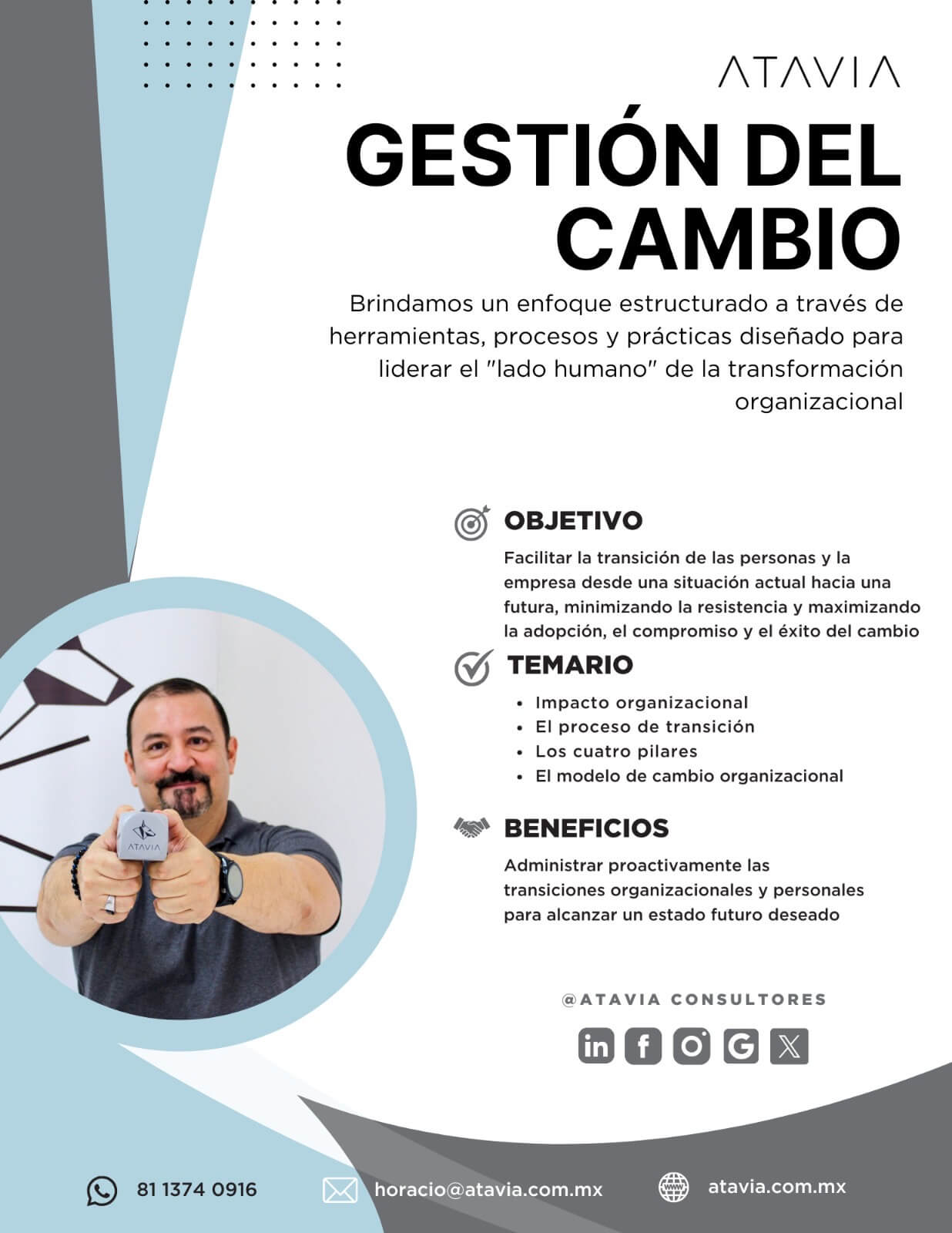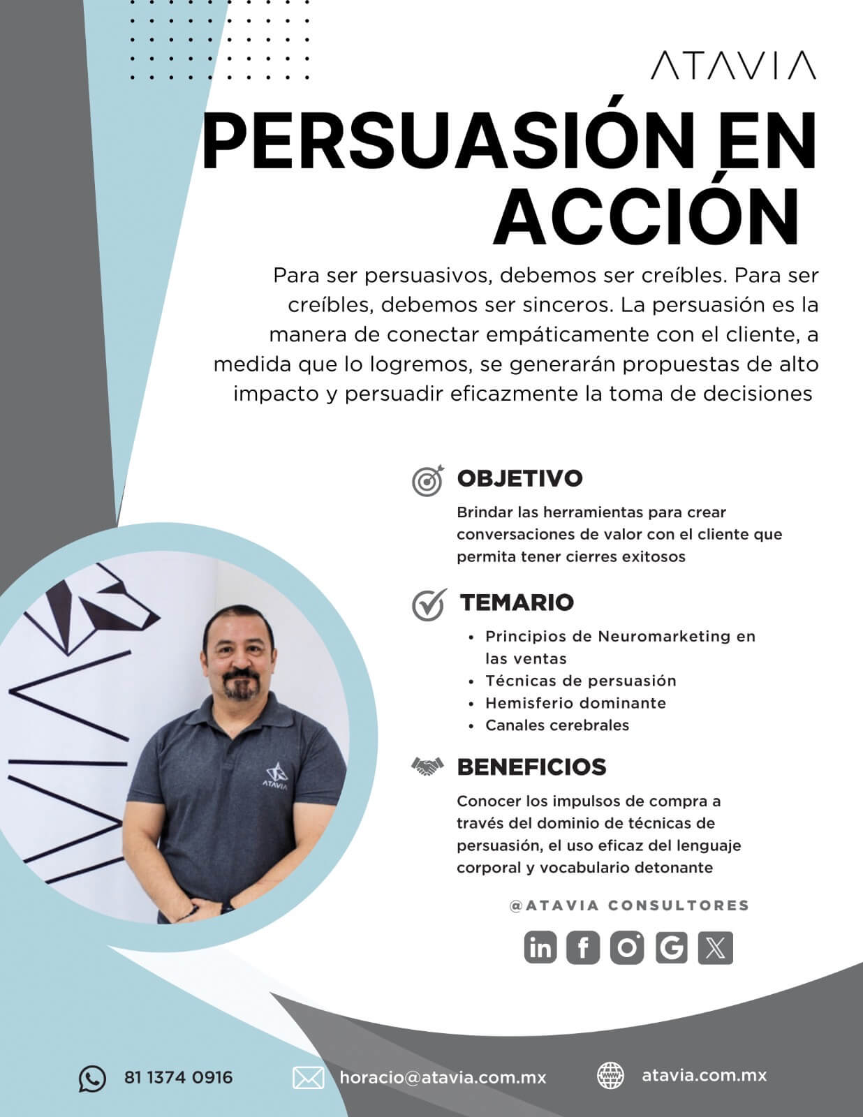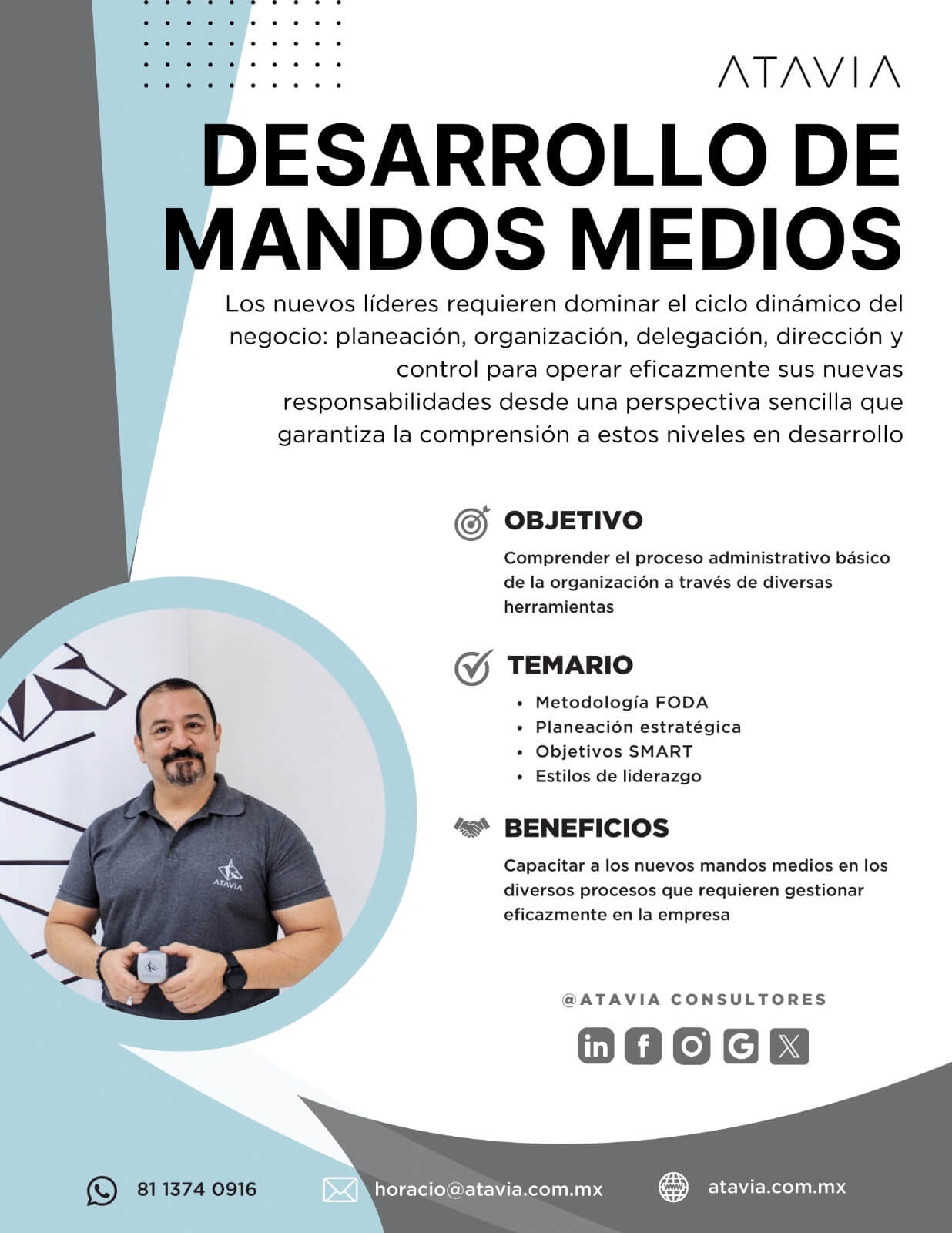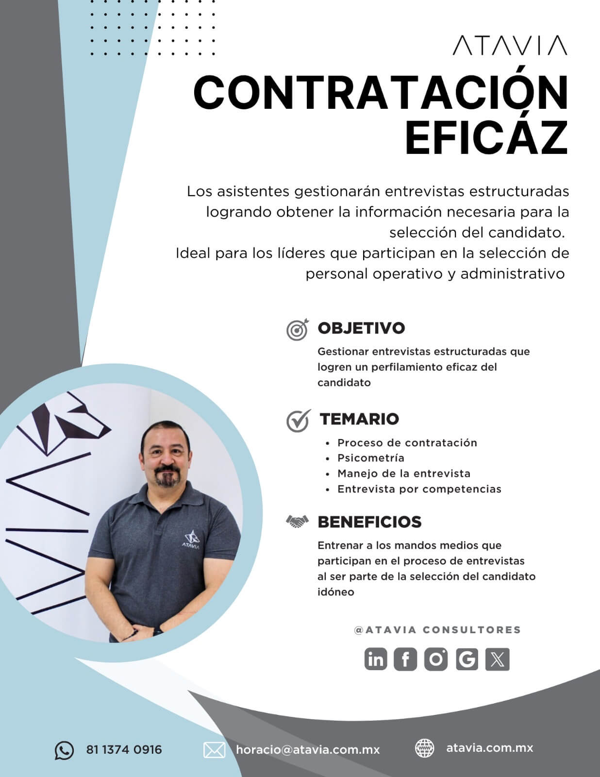 ATAVIA fue parte de uno de nuestros mayores proyectos de este año para el entrenamiento de nuestros lideres. Durante 5 meses aproximadamente contamos con el apoyo de Horacio para impartir una serie de entrenamientos que ayudaran a mejorar nuestros Kpis. Gracias Horacio por tan nutrida experiencia.