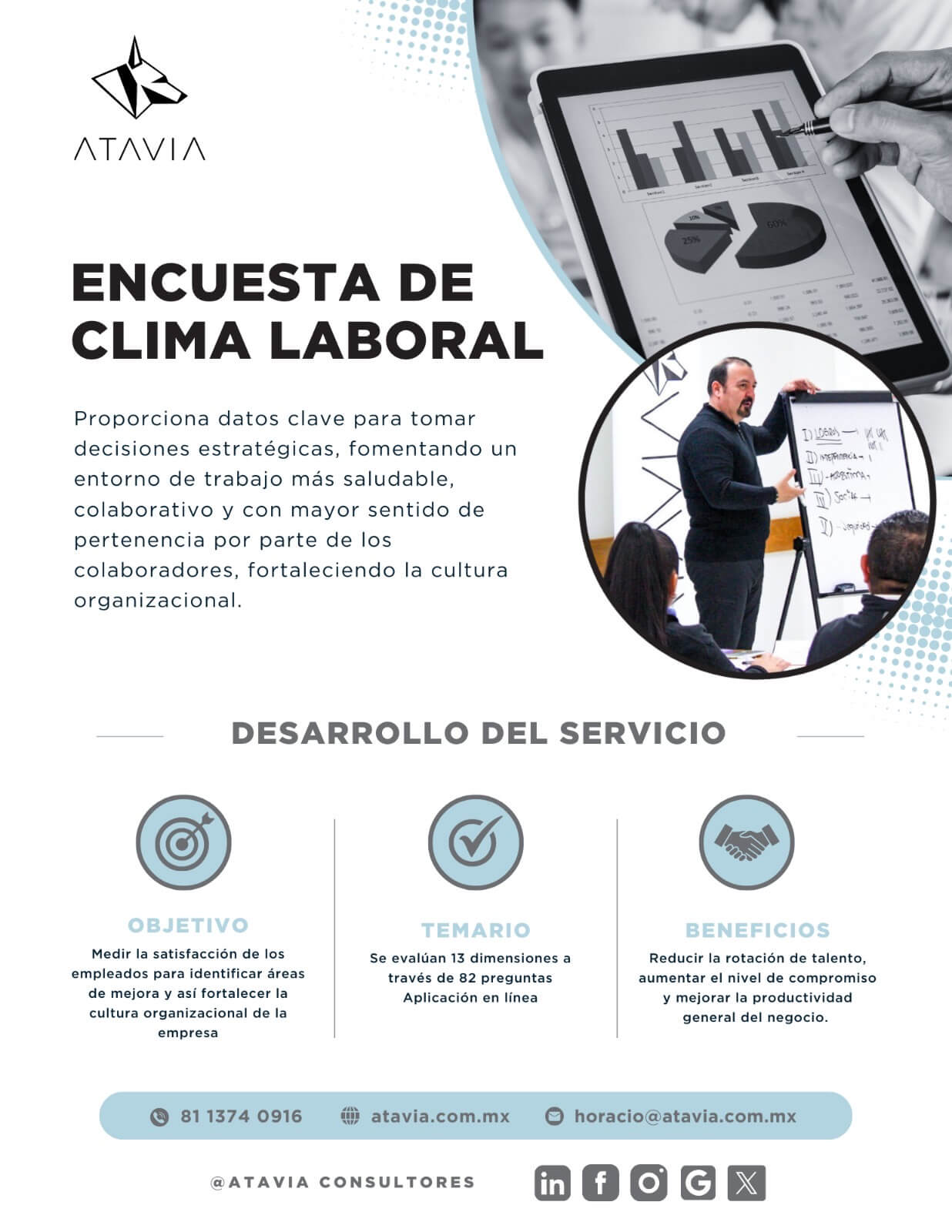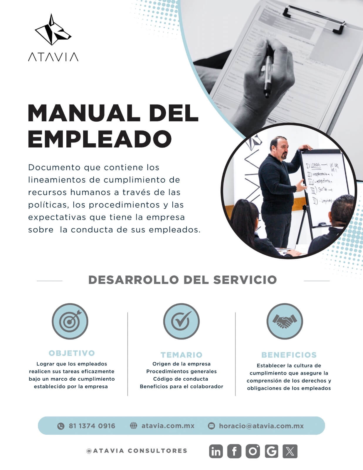 Atavia nos dio el servicio de asesoría en la NOM035, se cumplieron las fechas de entrega. Su asesoría fue fundamental para el éxito de la aplicación en nuestra empresa.