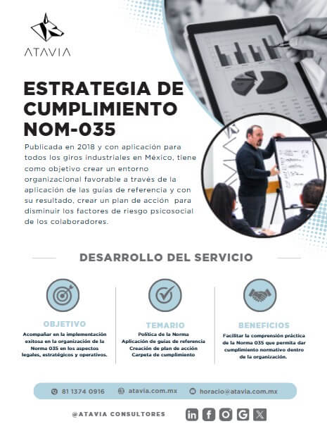 En Atavia hacemos un real acompañamiento en la implementación de la NORMA 035. Hemos aplicado más de 70 mil guías en 130 centros de trabajo en México.